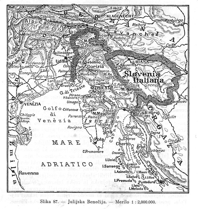 Ilustracija je iz italijanskega zgodovinskega učbenika za slovenske gimnazije v Ljubljanski pokrajini