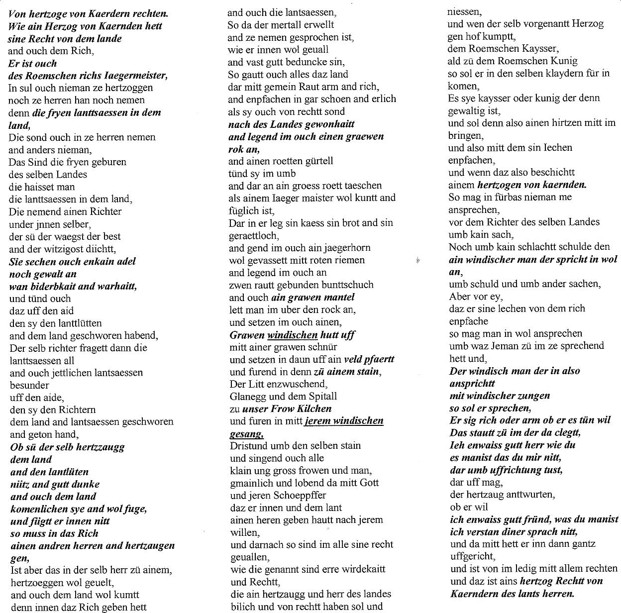 Schwabenspiegel o umestitvi in pravicah karantanskih knezov: